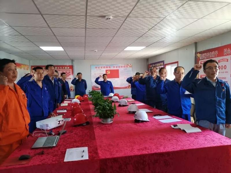 7月1日,新疆宜化項目部舉行慶祝黨的活動,向黨旗宣誓,號召項目黨員向英雄張富清學習。