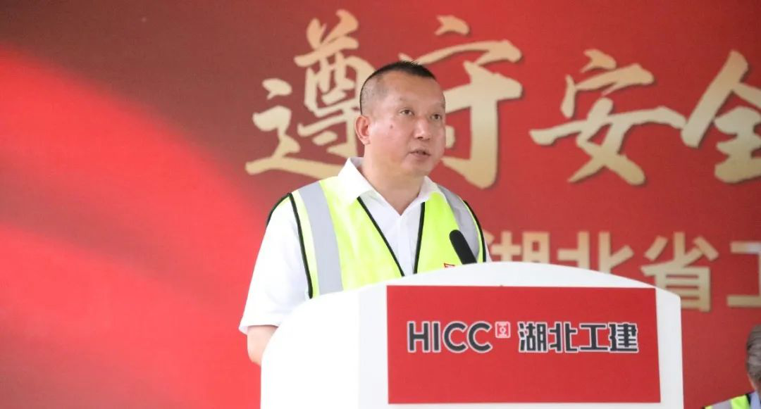 聯(lián)投集團(tuán)黨委委員、副總經(jīng)理周俊宣布湖北工建2022年“安全生產(chǎn)月”活動(dòng)正式啟動(dòng)。